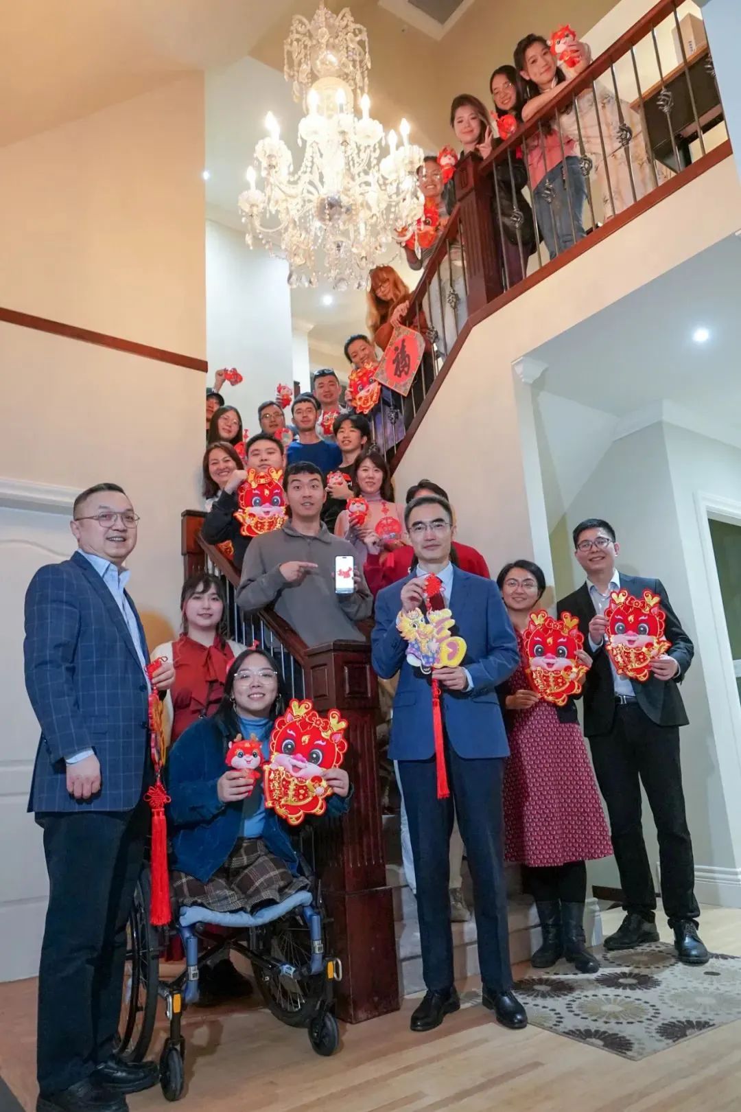 为喜迎龙年新春,让求学海外的同学感受到家和祖国的温暖,2月2日,驻温哥华总领馆在留学生之家举办“我和祖国一起迎新春”活动。杨舒总领事出席活动,向领区广大留学生送上新年祝福,参赞衔领事郭军陪同参加。