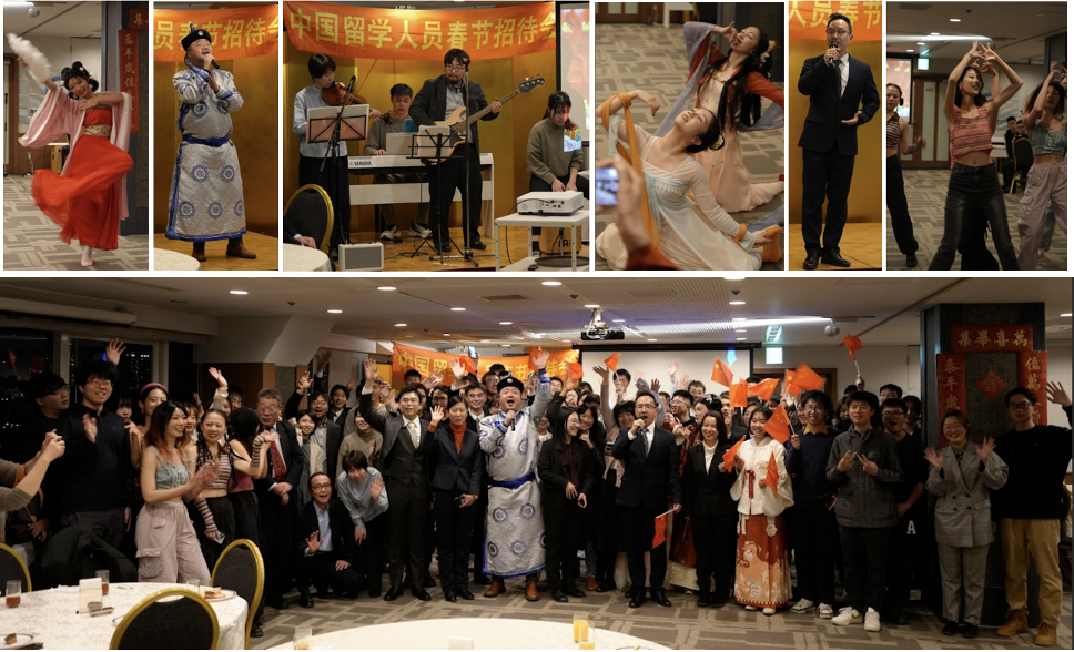 2月3日晚,2024年西日本地区中国留学人员春节招待会举行。驻大阪总领馆副总领事魏有美、教育处参赞聂瑞麟,西日本地区中国留学生学友会成员和来自京都大学、大阪大学、神户大学等50余所大学和科研机构的教职员代表、留学人员代表,以及友好团体、华人华侨代表等200多人在线上线下参加招待会。