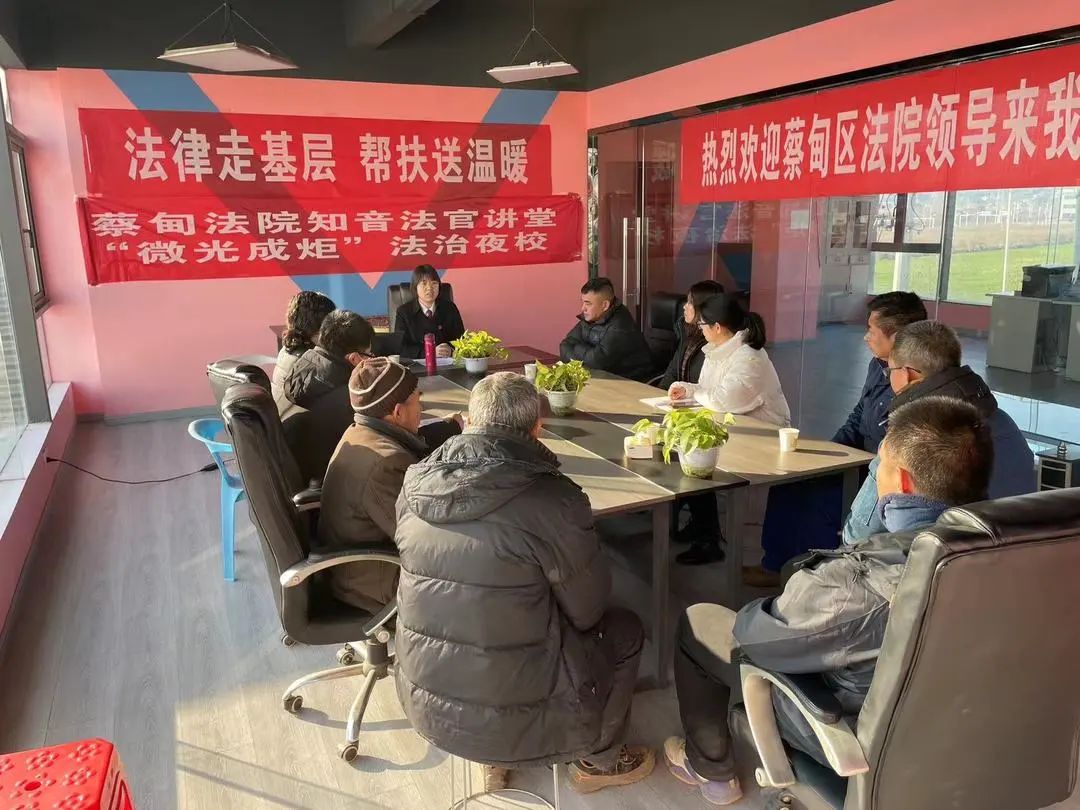近日,蔡甸法院奓山法庭走进蔡甸区奓山街星光佰事特产业园以“规范企业行为,保障交易安全”为主题开展“微光成炬”法治夜校活动,为产业园区企业送去“法治大餐”。该产业园区企业中层管理人员及工作人员等10余人参加。