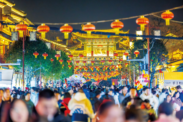 此外,一系列新场景、新产品、新玩法为市民和游客带来了新奇体验。昆明文庙举办文化惠民活动,展示昆明非遗项目和滇剧、花灯等文艺节目;公园1903将拜财神、接财运等民俗融入新春市集,推出财道地图、财龙抬头、祈财庙会、鱼灯巡游等活动;滇池后海商业街举办龙鱼千灯会,龙鱼灯游、放河灯等浪漫应有尽有。各大公园、社区街道、地标商圈也纷纷使出绝活,年味十足。