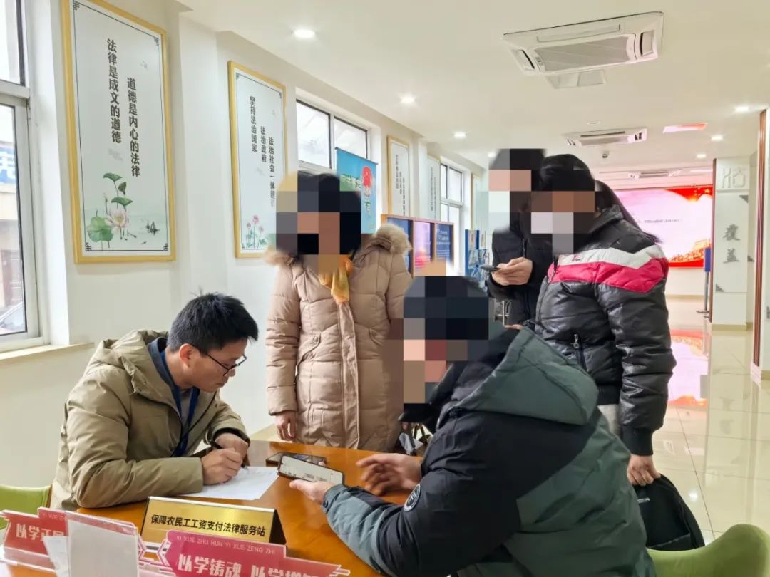 春节前夕,某企业在未清偿拖欠农民工工资情况下,被法定代表人注销,20名农民工来到区公共法律服务中心求助。为尽快帮助农民工拿到工资,区公共法律服务中心启动保障农民工工资支付法律服务应急机制,开通“绿色通道”,由区法律援助中心集中受理该群体性讨薪案件,做到当天受理、当天审批、当天指派,给农民工吃了一颗“定心丸”,助力农民工安“薪”过年。