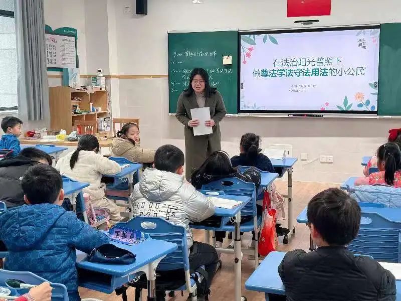 海湾旅游区司法所工作人员在上海师范大学附属奉贤实验中学办班点开展爱心寒托班法治宣讲活动,为30名小学生讲授一堂“在法治阳光普照下做尊法学法守法用法的小公民”主题法治课。围绕尊法敬法、学法明法、遵法守法、依法用法等四个方面,解读了法律的内涵、宪法、民法典、刑法、未成年人保护法等法律知识,并通过知识竞答、互动提问等形式活跃课堂气氛,帮助小学生度过一个安全、快乐、有意义的假期,让法治的阳光照亮小学生的人生航程。