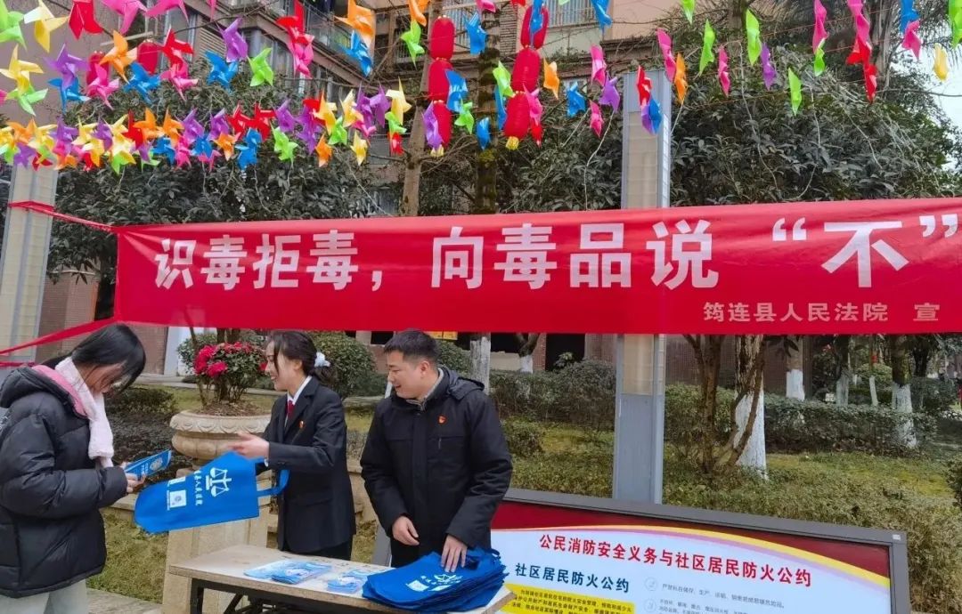 为进一步提升群众对毒品的防范意识和拒毒能力,营造全民禁毒的浓厚氛围,近日,筠连县法院组织干警到筠连县城“国际社区”小区开展禁毒宣传活动。