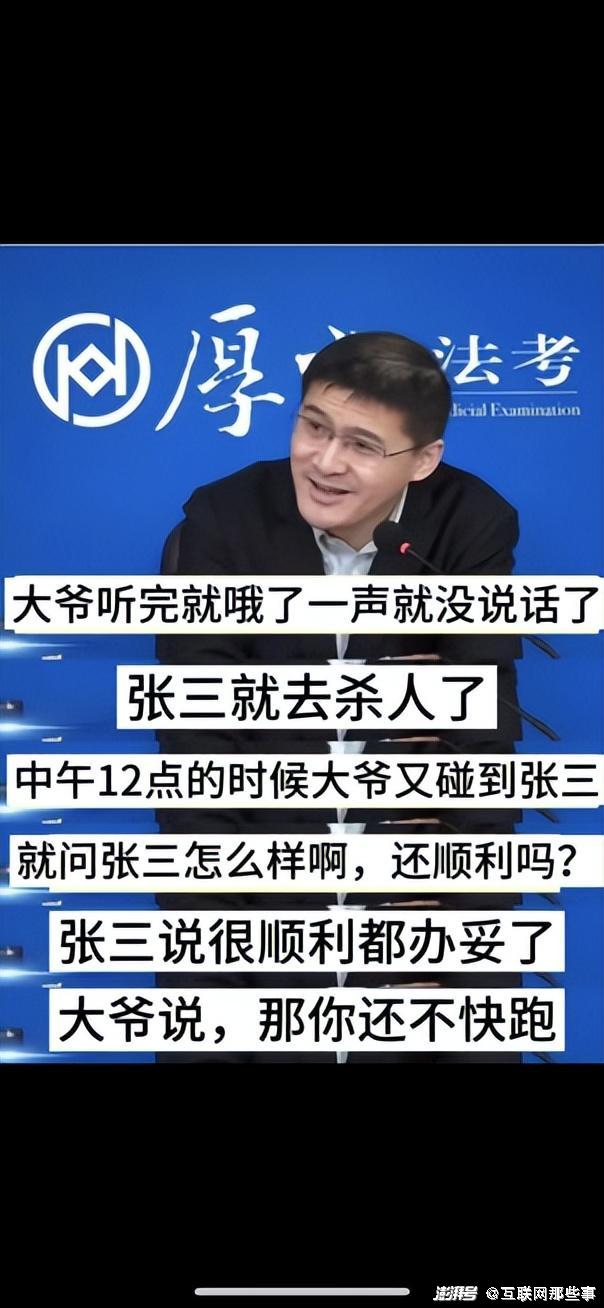 比如最经典的莫过于罗翔的张三宇宙。在罗翔进行法考辅导的短视频里,通过各种各样的以张三为主人公的案件来进行法律基础知识辨析。而有关罗翔科普的短视频切片或图文以其幽默风趣、通俗易懂的特点在整个短视频及社交媒体平台广泛传播了起来。