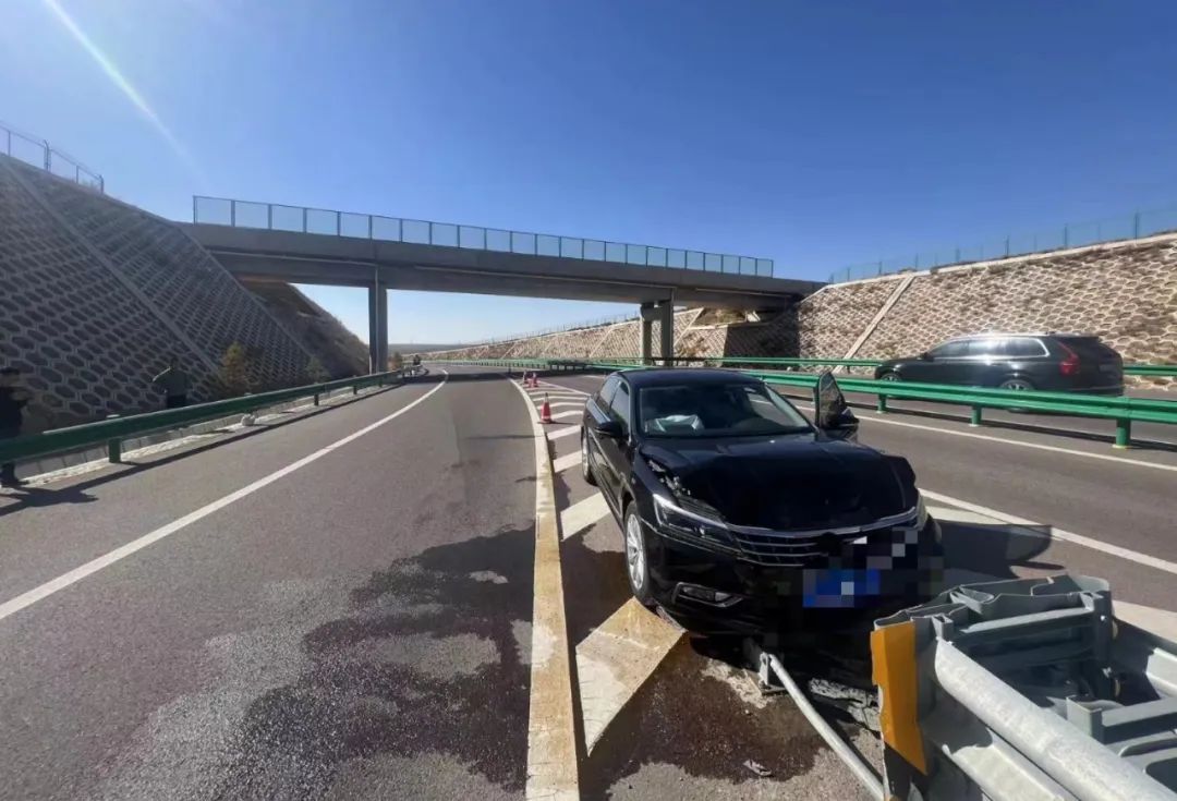 2月16日10时许,驾驶员折某驾驶黑色小型轿车行驶至定武高速公路转银百高速匝道处时,因接电话分心导致错过高速匝道口而强行变道,因操作不当导致车辆撞上包角头,安全气囊全部弹出,所幸无人员受伤。根据相关法律法规,驾驶员折某驾驶机动车未按照操作规范安全驾驶、文明驾驶是造成此次道路交通事故的直接原因,负事故的全部责任。