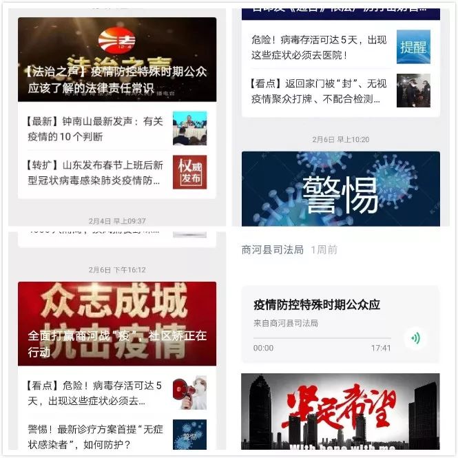 多媒介普法,扩大普法范围。在发挥报纸、电视、宣传车等传统媒介作用的同时,积极运用新媒体平台推送疫情防控信息和动态。截至目前,在平阴司法、平阴公安、玫城清风等微信公众号、新媒体平台发布疫情防控普法信息130多条,在微信工作群发布相关信息210多条,总浏览量达2万余人次。