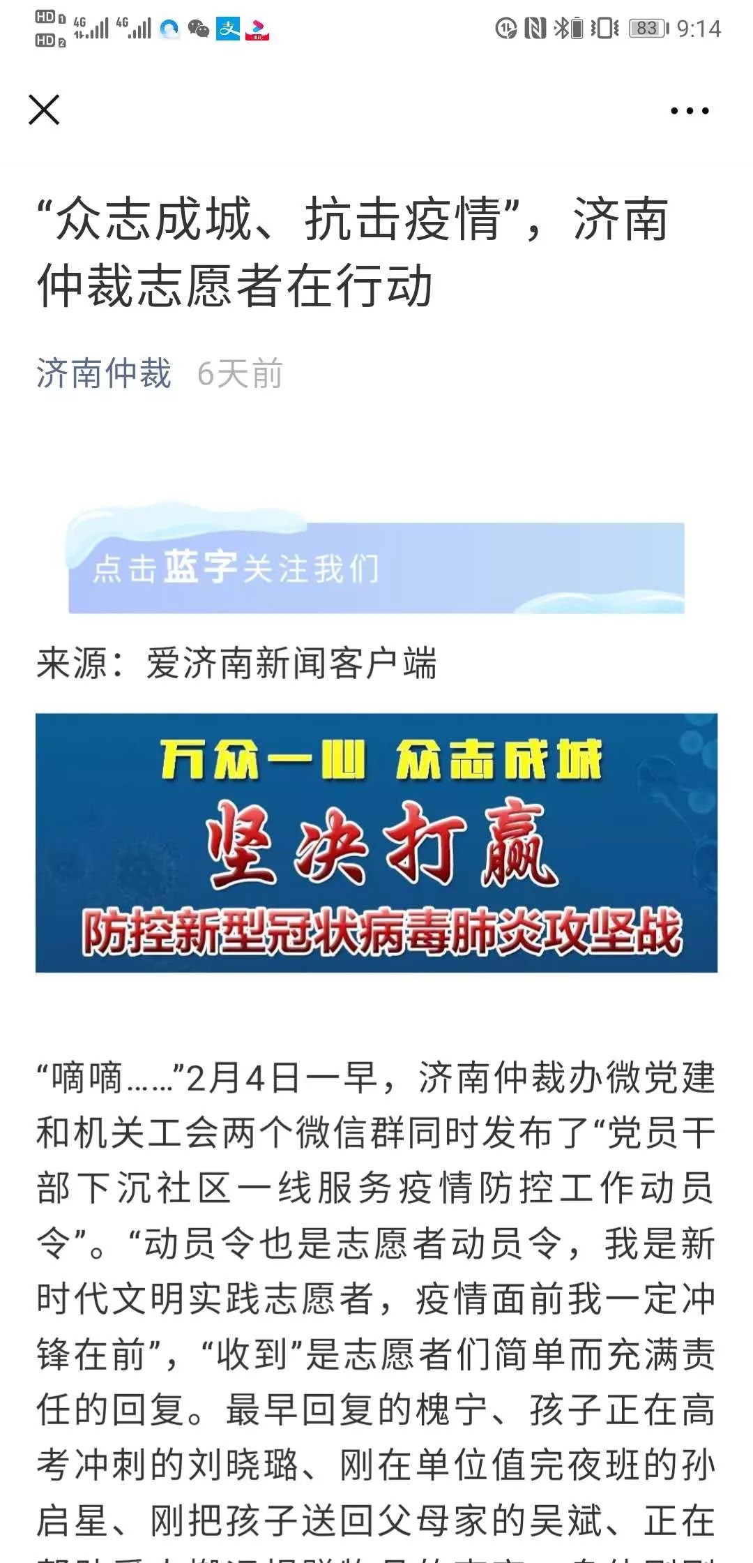 实时宣传一线工作风采。在全员下沉一线社区协助疫情防控工作后,通过济南仲裁办微党建、机关工会等微信群,实时宣传下沉一线社区服务情况、好人好事、经验做法,并编发战“疫”快报四期,有力传播了疫情防控正能量。