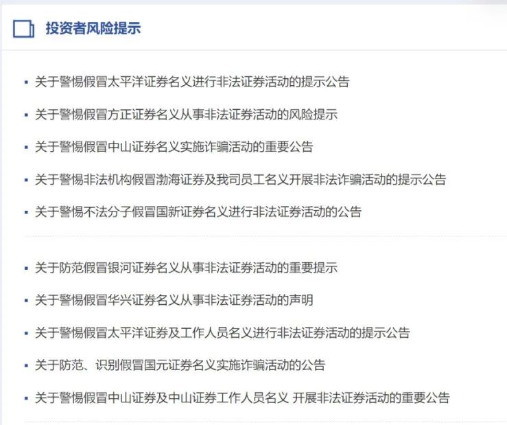 券商中国记者注意到,今年以来,已有20余家券商发布了警惕假冒公司名义从事非法证券活动的风险提示。