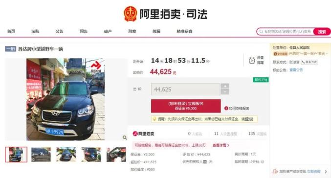 原标题:《佳县法院拍卖胜达牌小型越野车一辆,4.46万元起拍!》