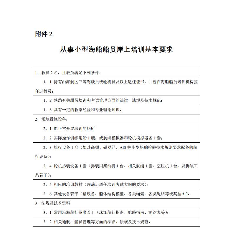 (三)具有和培训计划相适应的教学人员、设施设备和法规技术资料,但最低应当满足附件2的要求。