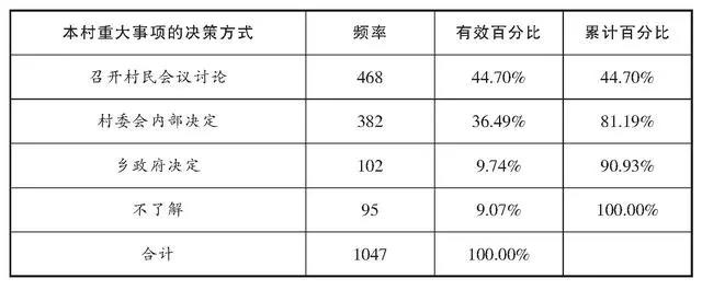 表2:本村重大事项的决策方式