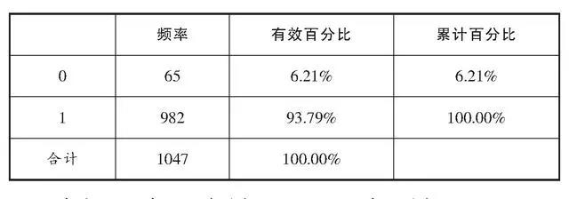 注:表中“0”表示没有选择此项, “1”表示选择了此项。