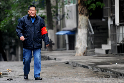 刘国保在下陆区铜盛社区巡查。图片来源:黄石文明网