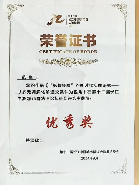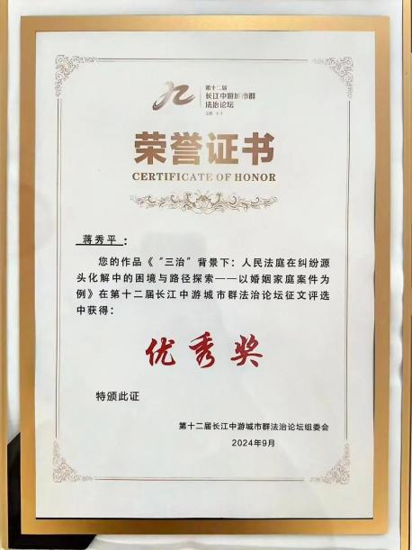 原标题:《安庆法院8篇论文在长江中游城市群法治论坛中获奖!》