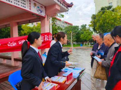 在活动现场,干警通过派发宣传彩页,耐心而细致地阐述了民法典的部分内容。同时针对彩礼的返还、如何认定夫妻共同债务、如何索要欠付的工资报酬等居民们关心的法律问题,结合多个典型案例,生动地向大家进行了讲解,为在场居民提供“零距离”法律服务。