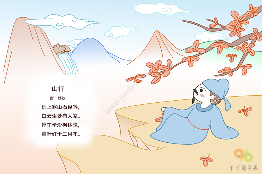 山行古诗配画简笔画