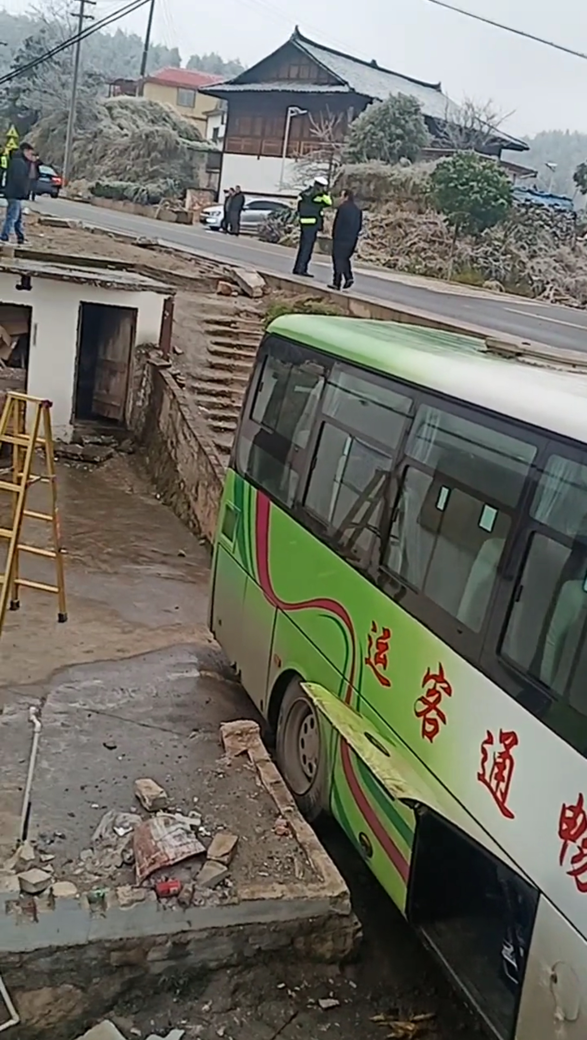 贵州一客车失控“冲”入农家院 当地交警:原因还不清楚
