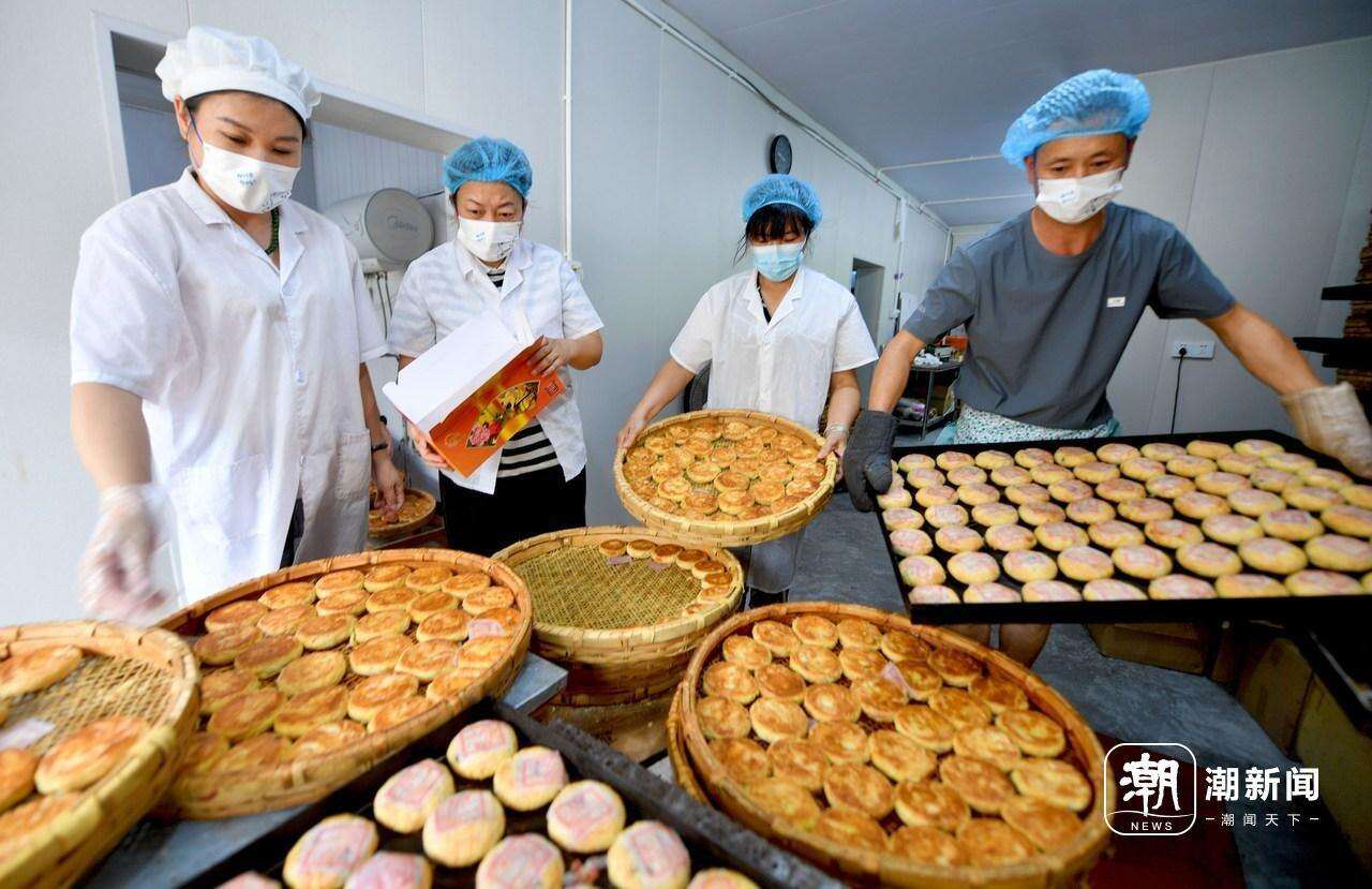 9月3日,在金华市婺城区百荷寻味创意美食工作坊里,员工正忙着赶制纯手工“国潮”月饼的中秋订单。记者 潘秋亚 拍友 时补法
