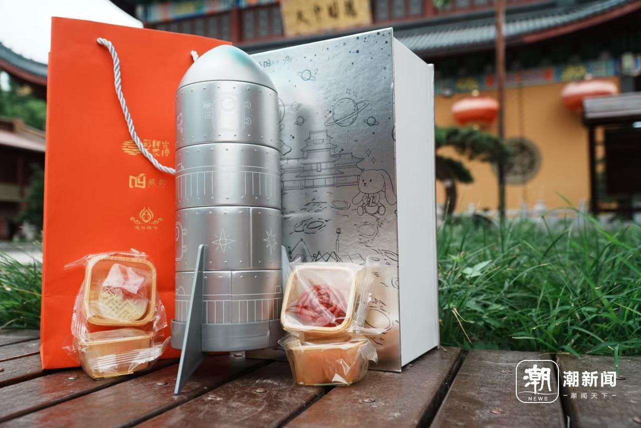 中秋临近,杭州临平运河街道戚家桥村推出外包装为火箭造型的月饼,月饼吃完后包装还可以用作装饰和收纳。拍友 吴文纹 摄