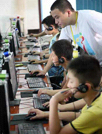 针对电视、互联网等大众传媒中渲染暴力、色情等内容,危害未成年人身心健康,诱导未成年人犯罪的问题,亟须建立出版物和大众传媒分级审查制度。图为河南省宝丰县青少年校外科技活动中心的“绿色网吧”。该网吧安装软件过滤不健康内容,将不良信息“拒之网外”,同时收录党政、时事、军事、文学、科技等内容,引进1000 余套中小学教育辅导教材。摄影/ 王双正