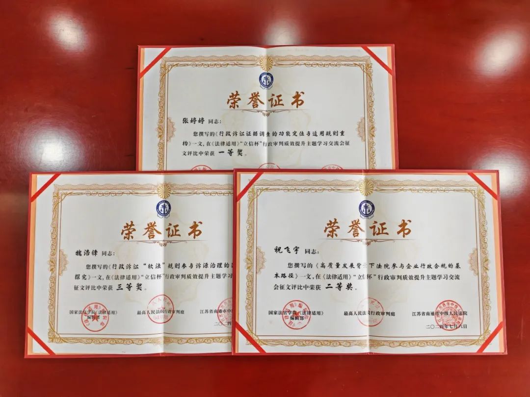 近日,由国家法官学院《法律适用》编辑部、最高人民法院行政审判庭、江苏省南通市中级人民法院共同组织的《法律适用》“立信杯”行政审判质效提升主题学习交流会在江苏南通召开。会上对行政审判质效提升主题征文比赛获奖作者进行了表彰,北京一中院行政庭3篇论文获奖。