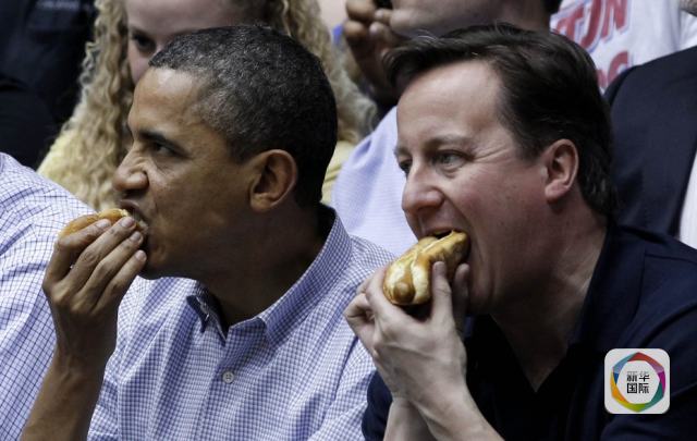2012年,英国首相卡梅伦访美时,和奥巴马观看了一场篮球比赛,两人边看比赛边享用热狗。