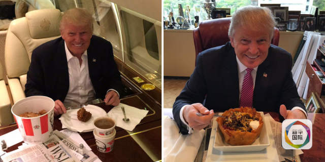 特朗普也一直在自己的脸书和推特账号上,向全美民众直播自己对“垃圾食品”的偏好——狼吞虎咽肯德基炸鸡、麦当劳汉堡和薯条,大口吞咽墨西哥玉米面豆卷。