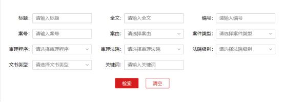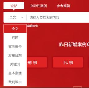分段检索:点击全文下拉框,可定位在全文、标题、案例编号、发布日期、关键词、基本案情、裁判理由段中进行检索。