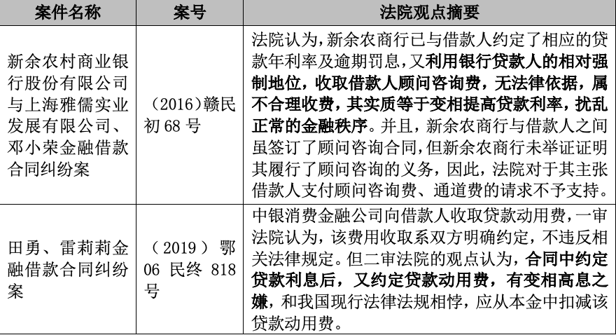 会议纪要的规定与司法实践中对于变相利息问题的观点基本一致,金融机构收费存在变相高息之嫌时,法院倾向于不支持该等费用,如以下两个案例: