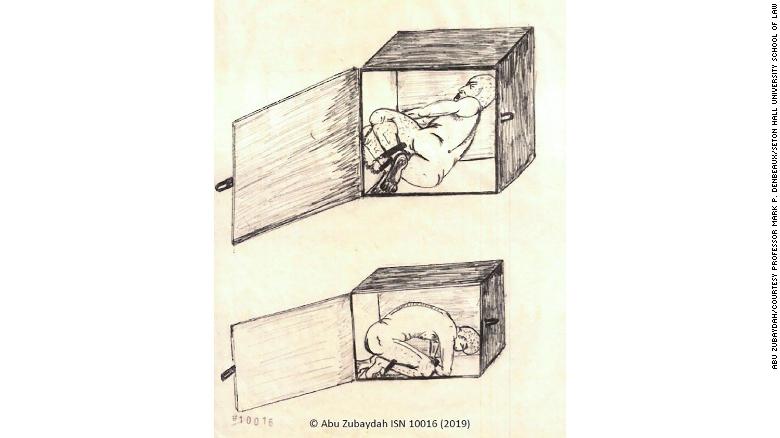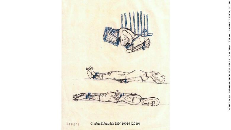 报告中包括了祖贝达手绘的插图,“生动详细地”展现了他2002年在CIA海外“黑牢”中被施加的各种酷刑。