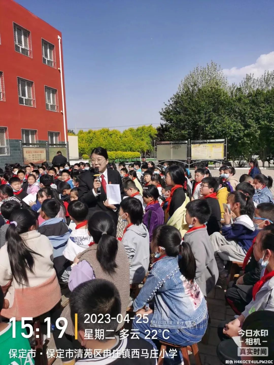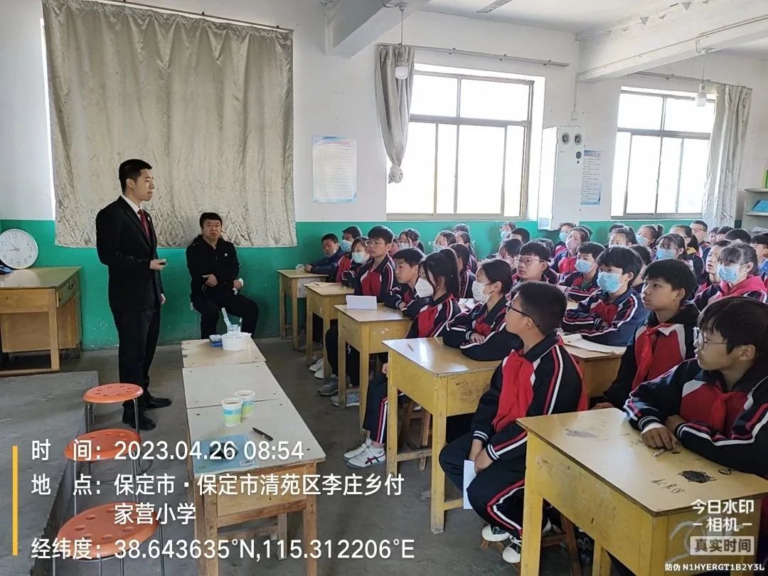 清苑区法院选派30名干警担任李庄乡、魏村镇、阎庄乡、冉庄乡4个乡镇的李庄中学、武罗侯小学、侯郎营小学、冉庄小学等30所中小学校的法治副校长,深入校园开展普法教育,宣讲少年儿童权益保护、防范校园欺凌和预防青少年犯罪等法律知识,帮助未成年人树立法治观念,增强法治意识。