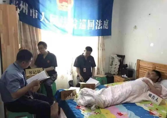 前一阵,网上有张图火了,一个人躺在床上,旁边摆着被告人的牌子,有几个人围在他旁边审判��