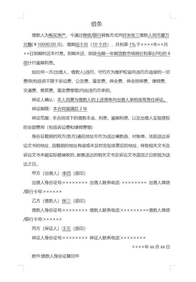 “完美”借条模板