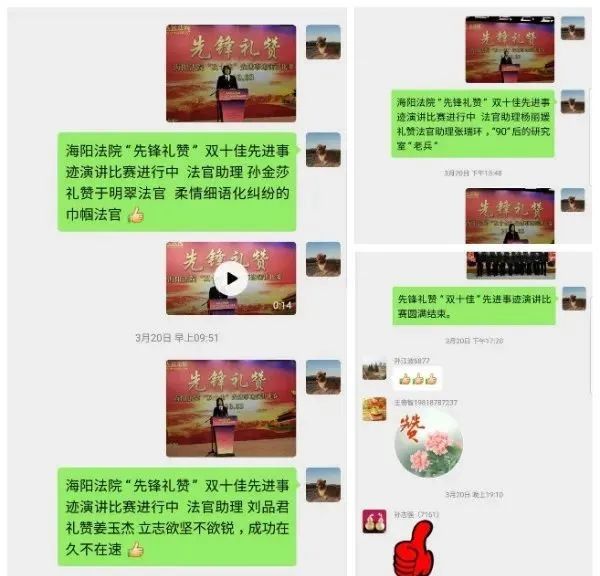 赛后,海阳法院组织专业人员对本次演讲比赛进行网络评选和网上投票,并统一进行后期视频制作,将发放给各党支部和干警,打造反复观看学习、分散观看学习、随时观看学习、有针对性观看学习、安全观看学习的新机制,真正发挥演讲比赛弘扬“先锋文化”的作用。