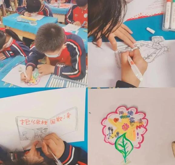 课后,组织学生以“绿满校园 护苗成长”为主题自由发挥进行绘画创作。