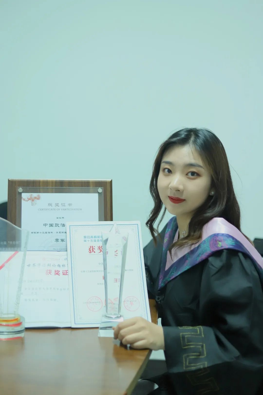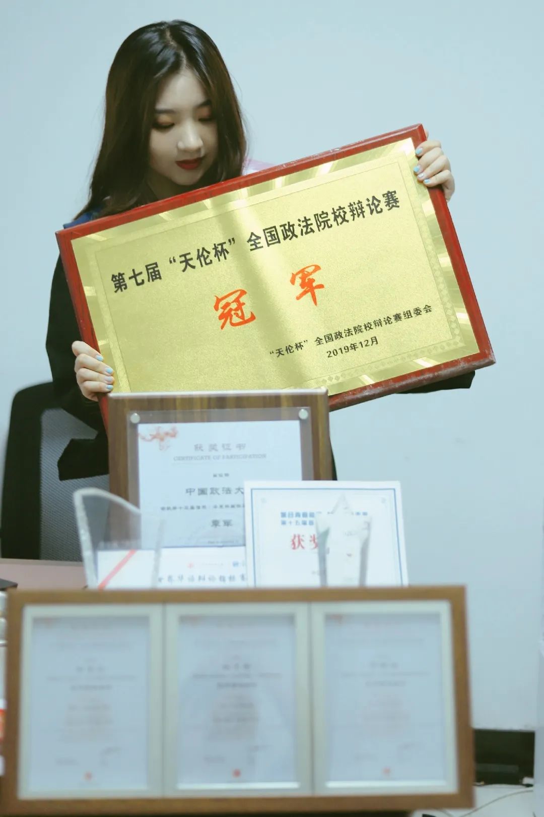 2019年第九届世界华语辩论锦标赛北京赛区亚军、总决赛八强;2019年第十五届首都高校环境文化季环保主题辩论赛冠军;2019年第七届天伦杯全国政法院校辩论赛冠军;2020年第十三届华夏杯国际华语辩论锦标赛季军;2022年第十五届华夏杯国际华语辩论锦标赛冠军、决赛最佳辩手。