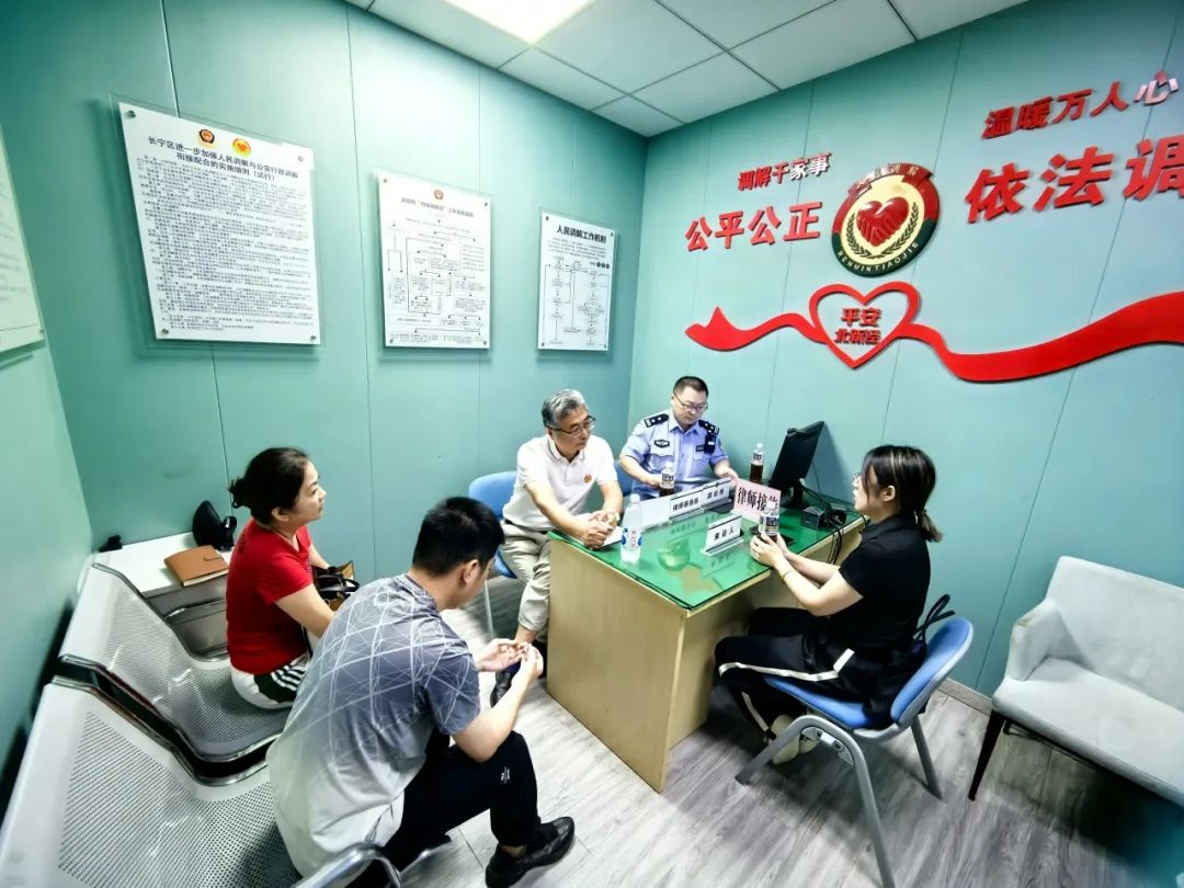 在调解中,当事人双方、调解员、居委干部、律师和社区民警都来了,面对面交流,一起商量。几个小时里,大家各抒己见,谈诉求说想法,最终妥善解决了实际漏水问题,就赔偿事宜达成了一致意见,邻里关系恢复如初。