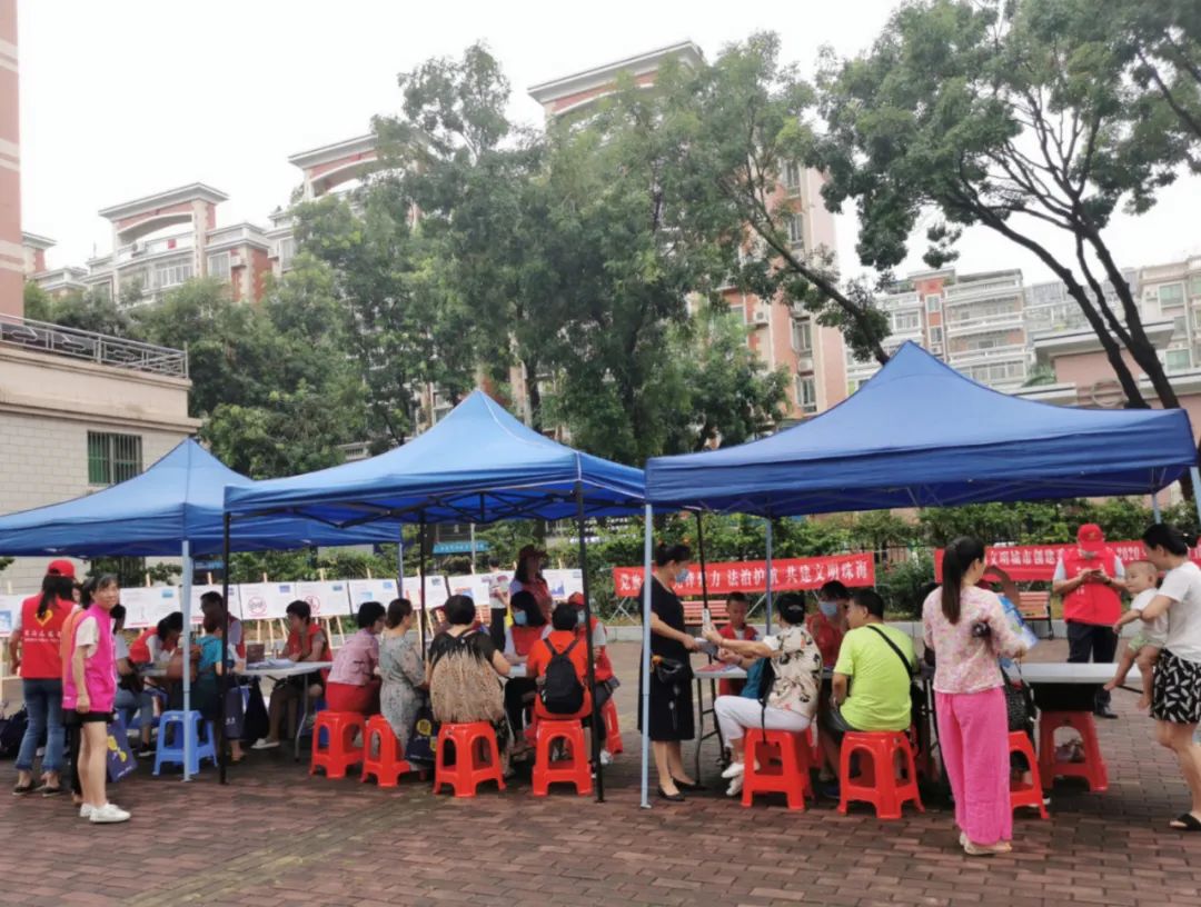 在嘉丰花园小区中庭广场,珠海市司法局政治处主任杨静作简短部署动员后,市局党员与志愿者迅速行动,分四组开展志愿服务活动。