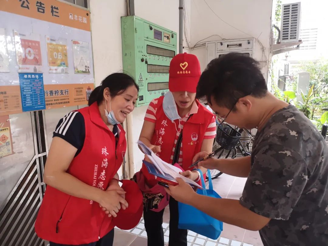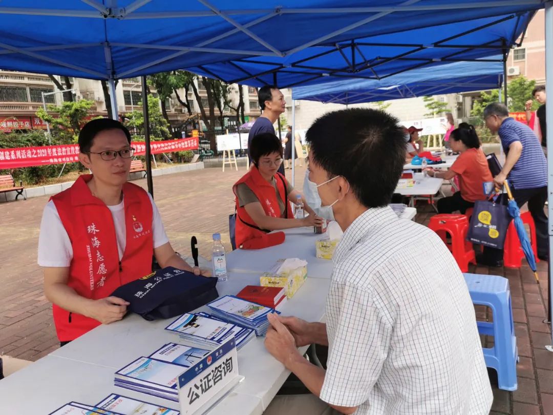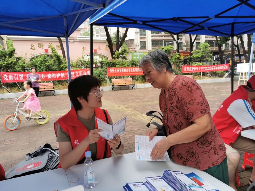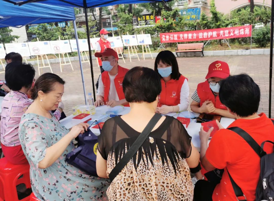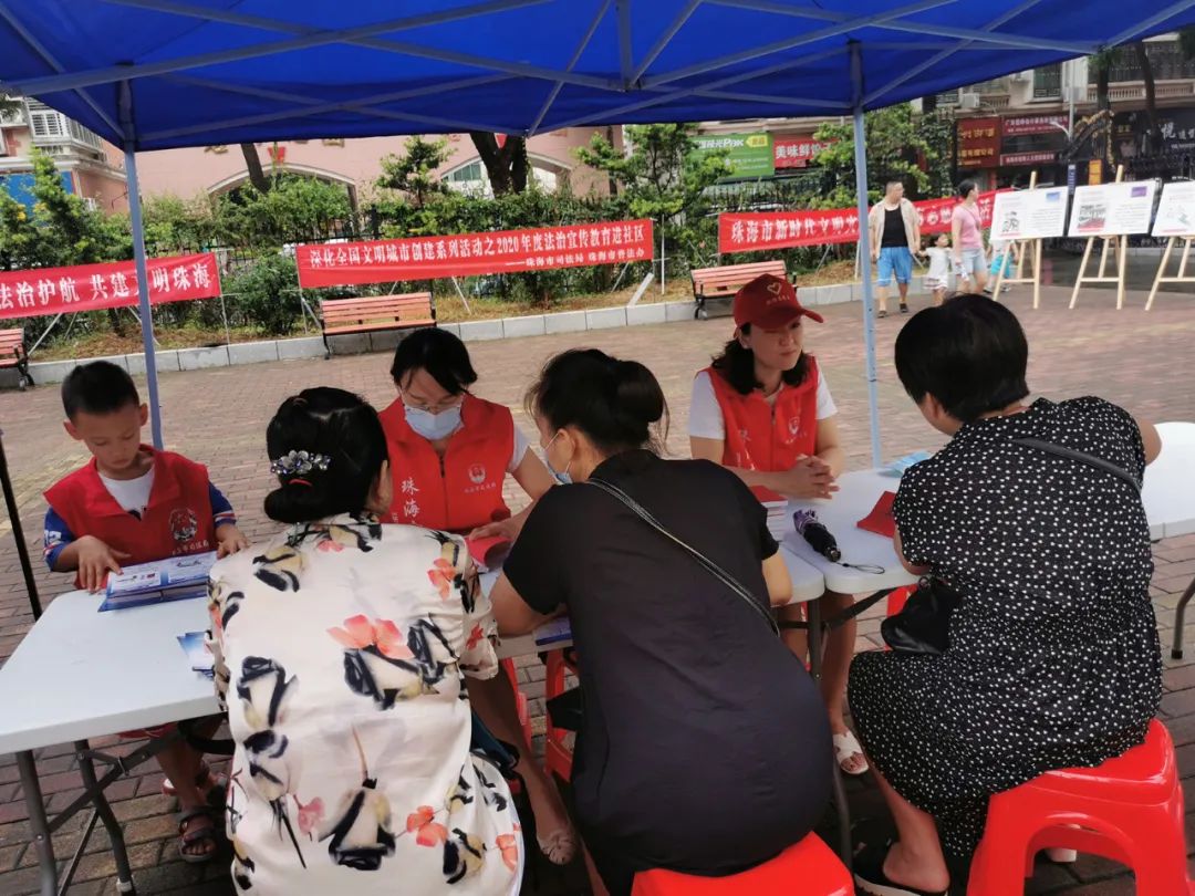 志愿者们通过向居民及商户派发《民法典》及多样化的普法宣传折页,重点宣传了珠海市创建全国文明城市和开展社区法治宣传教育活动的相关情况;紧紧围绕《民法典》的颁布实施,向广大社区居民讲解与日常生活息息相关的法律知识,同时发放调查问卷广泛征求对法治宣传教育工作的意见建议。