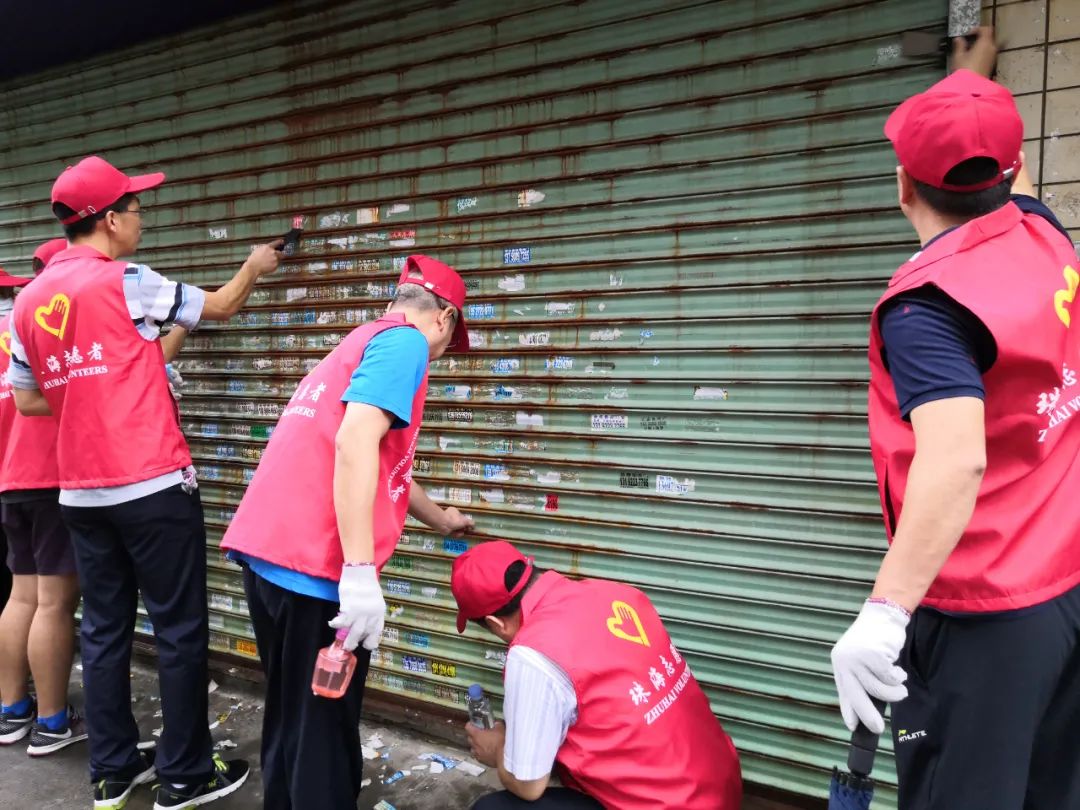 活动中,党员及志愿者集中对商铺卷帘门、建筑物外墙上的小广告进行了清理,并积极向市民和商家宣传城市“牛皮癣”对城市的不良影响,自觉抵制不文明现象,努力营造“珠海是我家·文明靠大家”的良好社会氛围,共创整洁宜居环境。