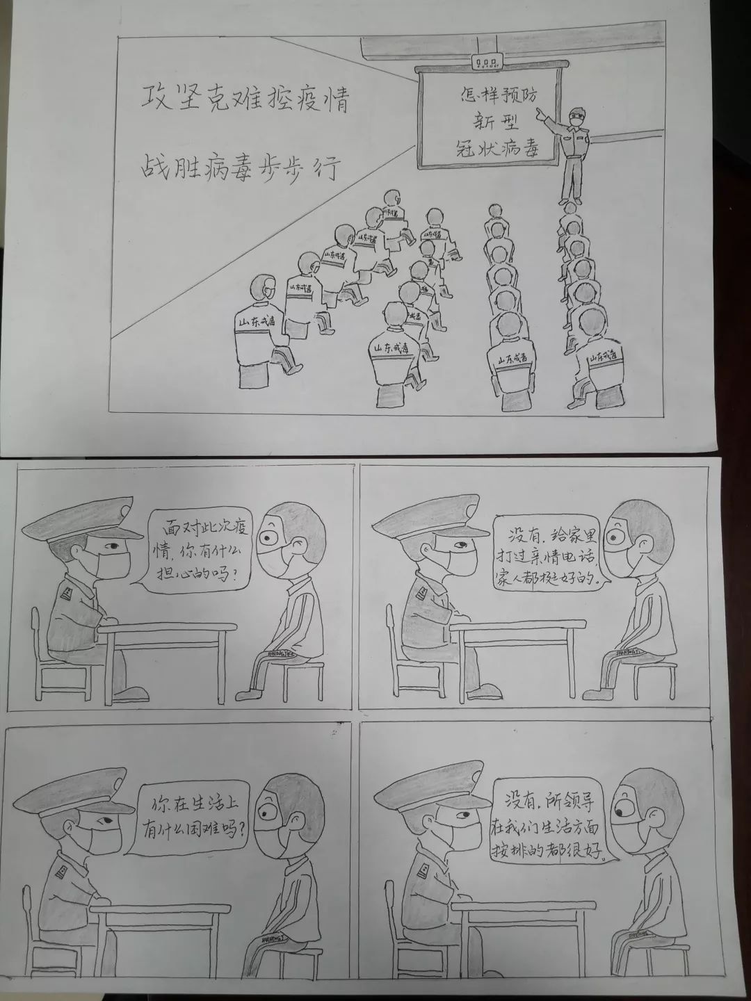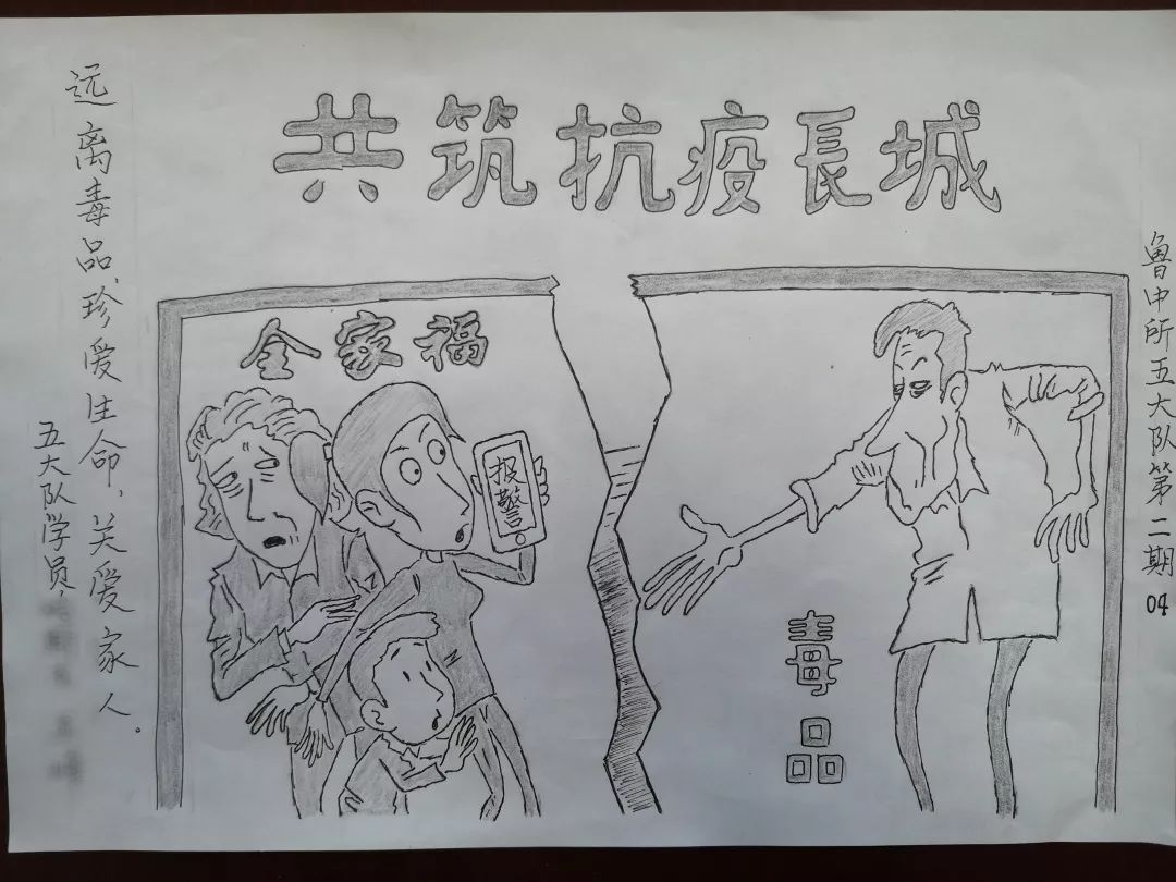 为强化疫情防控意识,推动疫情防控工作顺利开展,省鲁中所五大队充分发掘艺术题材,积极引导戒毒人员发挥特长,开展绘画、书法创作,绘制了展现疫情期间戒毒人员戒治生活的系列漫画,引起戒毒人员思想共鸣。