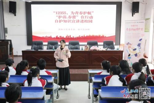 大江网/抚州头条客户端讯 为进一步加强学生健康教育,关注学生心理健康,关爱女生青春期健康成长,近日,共青团临川区委、区青联联合区妇联在临川区大岗中学开展“12355,为青春护航” “护苗·春蕾”女生青春期自护知识健康教育,全校七年级全体女生参加此次活动。