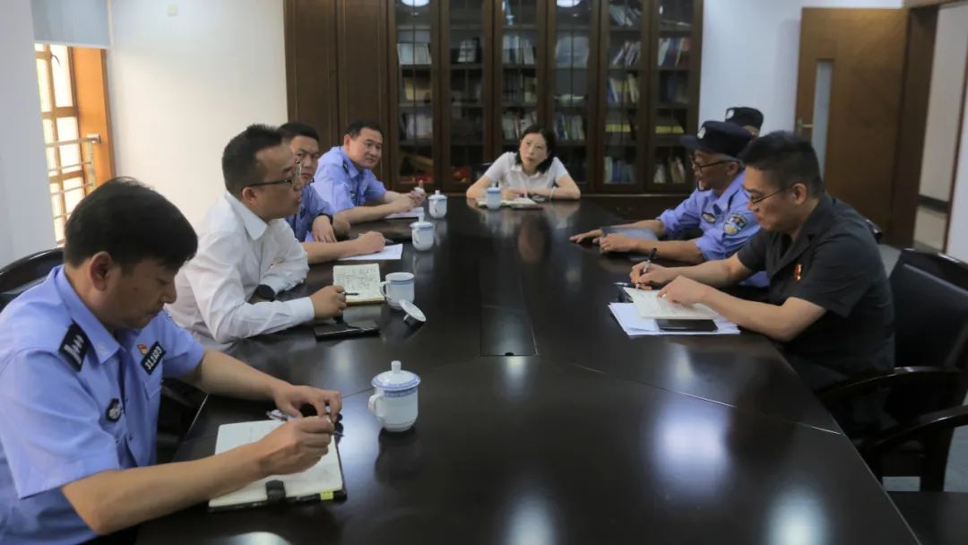 听取各法庭负责人、驻庭司法警察及物业领班等对法庭安保工作情况介绍、问题反映和意见建议;探讨进一步加强法庭安保工作、纵深推进“枫桥式人民法庭”创建等问题。