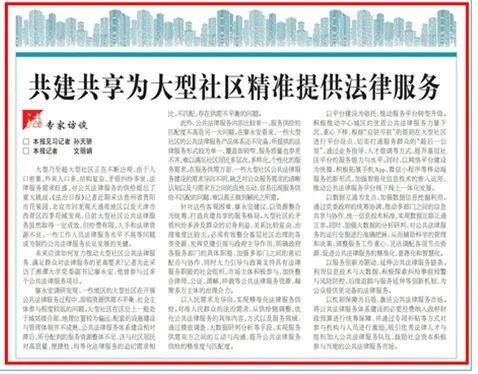 9月30日,《法治日报》法治经纬整版刊发了《大型社区公共法律服务难题怎么解》的文章。
