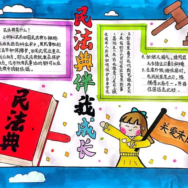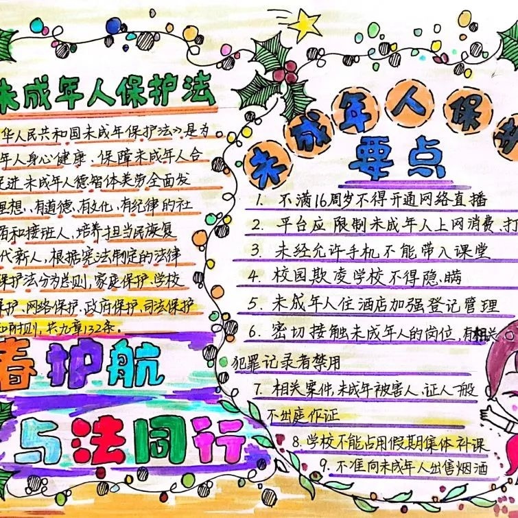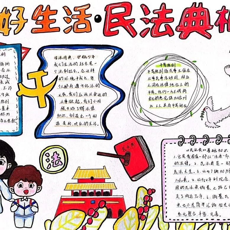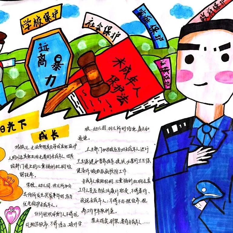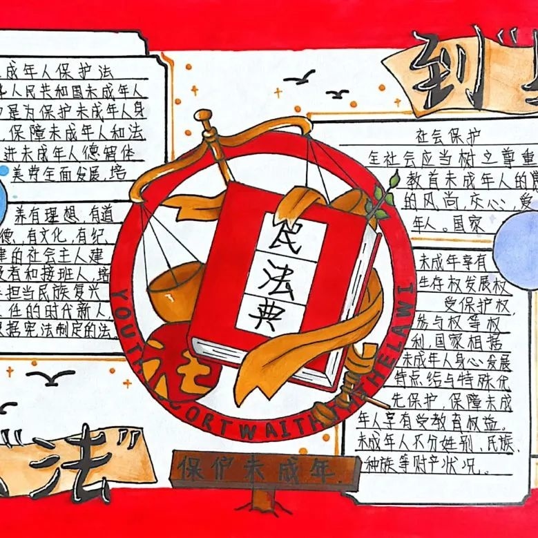 枫泾中学法治副校长孙艳到初一(1)班开展法治主题班会课,从防范校园暴力、防范网络风险及防范毒品陷阱等方面,将尊法、学法、守法的观念深植在同学们的心中。另外,还集中开展青少年法治手抄报活动,共收到50余篇作品,从不同角度、不同侧面对《民法典》《未成年人保护法》等法律知识进行宣传。