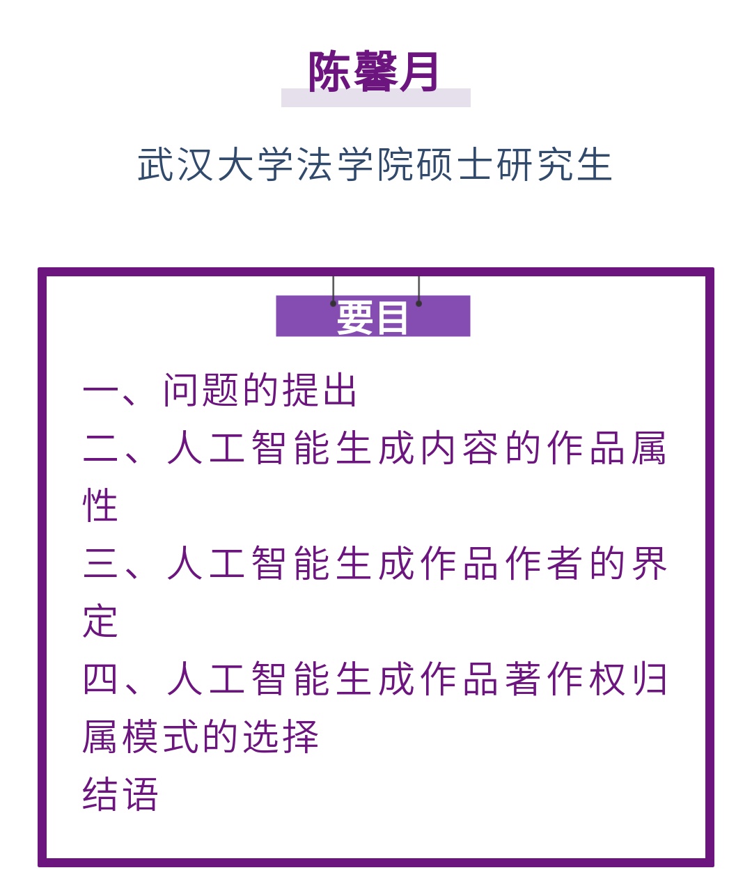 其次,作品属于狭义的著作权客体,表达是否构成作品属于权利客体的属性问题。“人”的创作属于权利归属问题。作品表达本身的认定不能注入主体因素,否则将模糊著作权的主体与客体之间的界限。人工智能的“创作”是否能够等同于自然人的创作属于著作权的主体问题,也进一步涉及著作权权利归属问题,而这一问题并不应该在涉及权利客体的作品认定方面进行讨论,反之这会使得著作权主体及归属讨论毫无意义。另外,通过著作权法第十一条的权利归属条款对著作权客体范畴进行二次衡量实质上有任意限缩“作品”的涵盖范围之嫌。