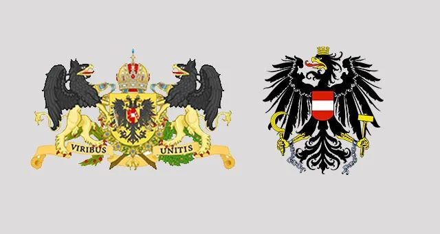 ▲左为哈布斯堡奥地利末代皇帝徽章,中间是双头鹰徽,右为现代奥地利国徽,改用单头鹰徽