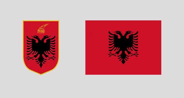 ▲阿尔巴尼亚国徽上有一顶斯坎培德帽,以纪念民族英雄斯坎培德
