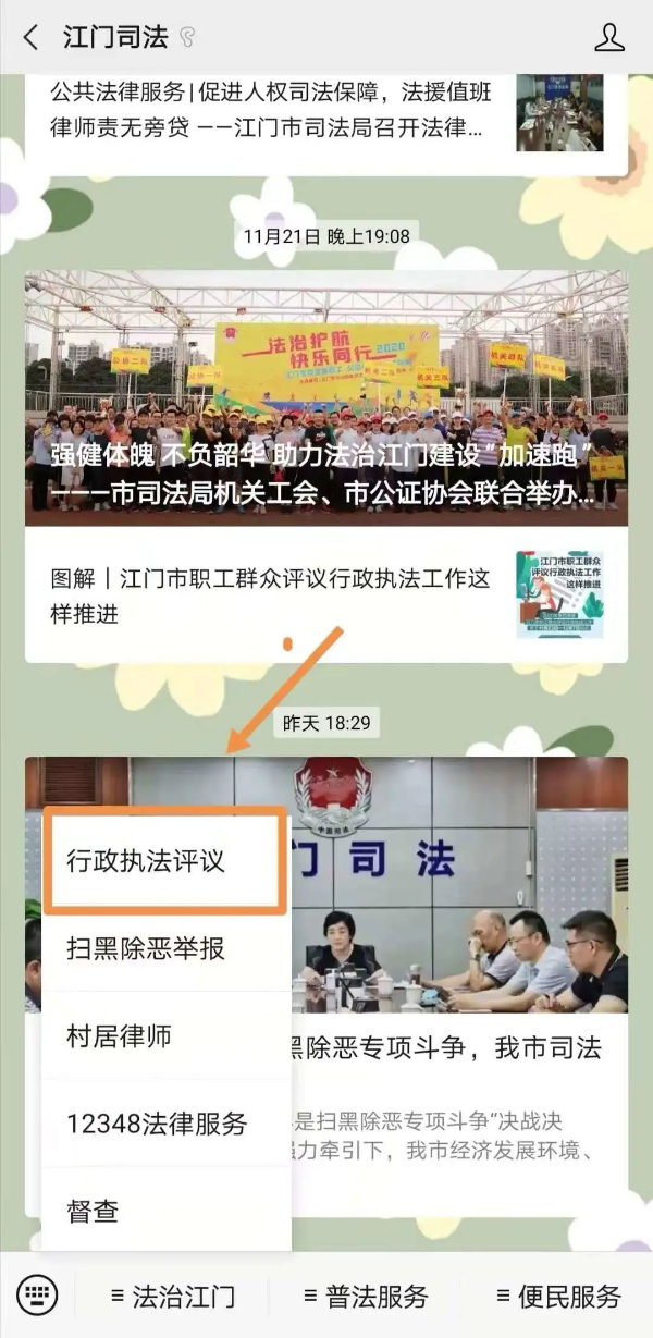“江门司法”微信公众号--法治江门--行政执法评议
