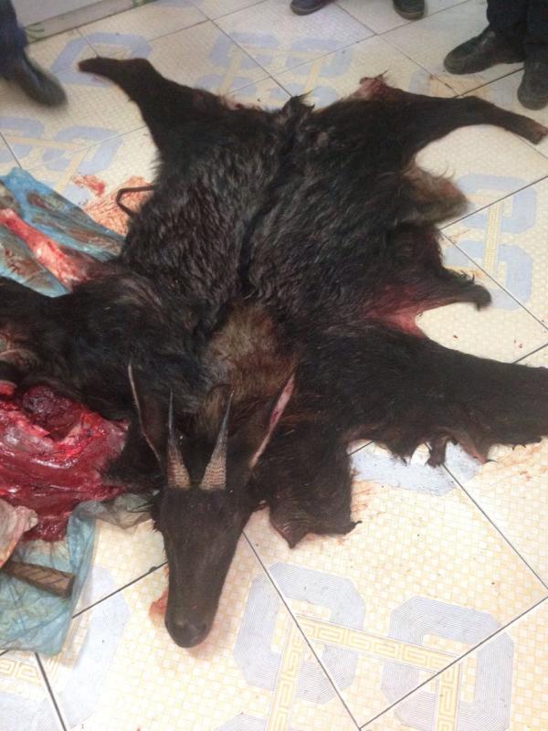 私拉电网捕到一头国家二级保护动物鬣羚,还以为是《封神榜》里的神兽“四不像”,拉到菜市场门口叫卖——澎湃新闻()10月21日从温州文成县警方获悉,当地三名老汉已因涉嫌非法猎杀珍贵濒危野生动物被刑拘。